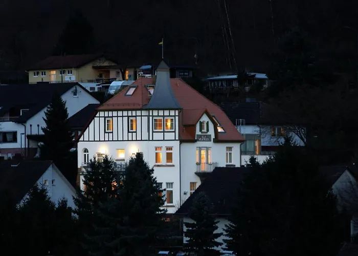 Hotellet Villa Waldfrieden - Design Trifft Budget Annweiler am Trifels ligger inom 14 minuters promenad från Burg Trifels och inom 3 km från Burg Neukastel. Detta 3-stjärniga hotell har också Wi-Fi i hela boendet.